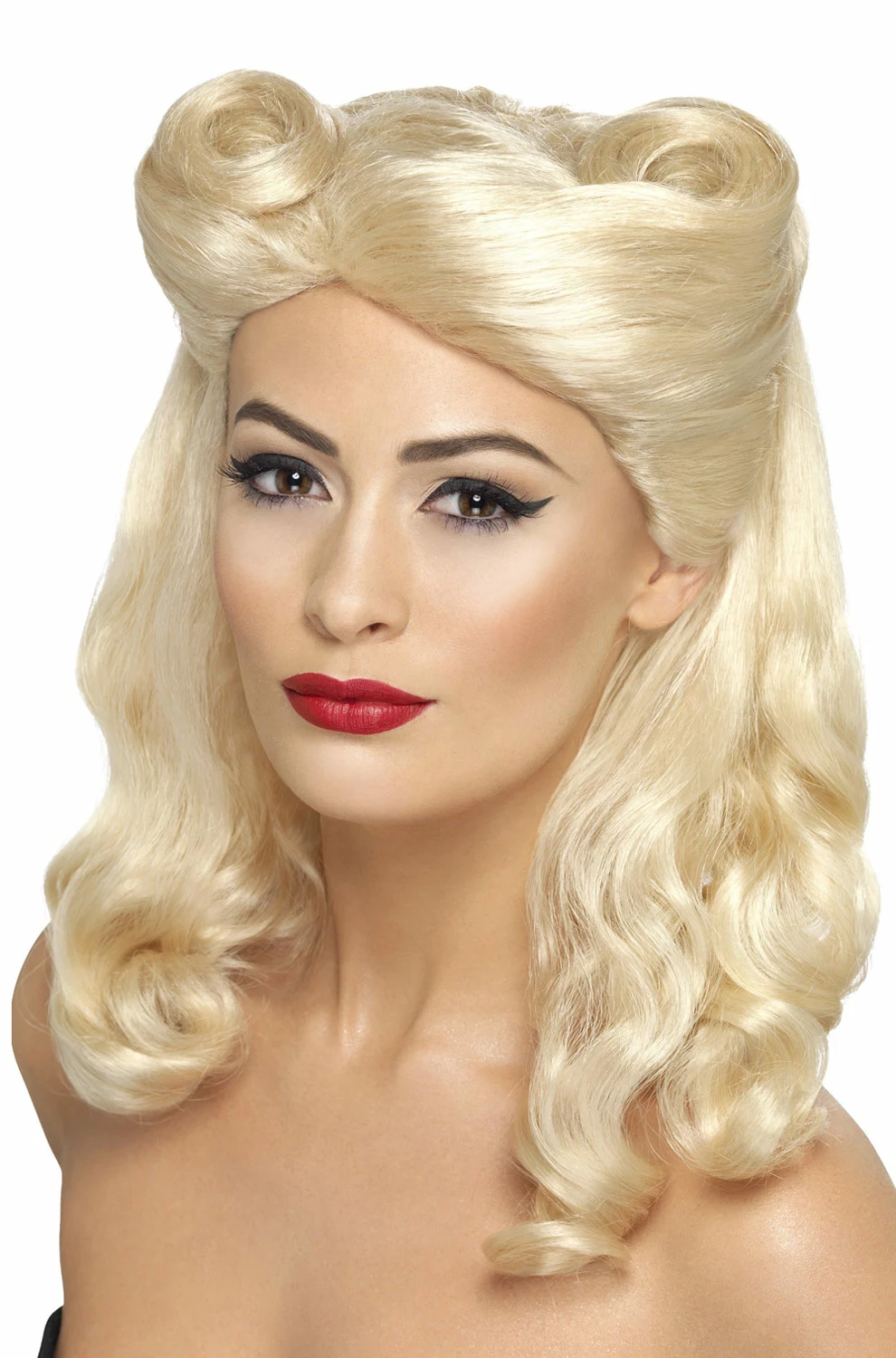Turn yourself into a retro pin-up babe! This wig will give you those hard to recreate victory rolls that you see in all the pin-up magazines! You’ll become a 1940’s model in an instant!