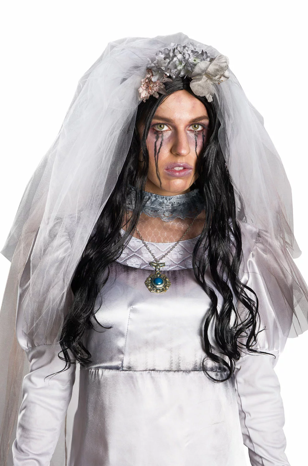 Complete your La Llorona costume with a creepy black wig. This wig is fit for a terrifying ghost. It’s the perfect finishing touch to any scary Halloween costume!