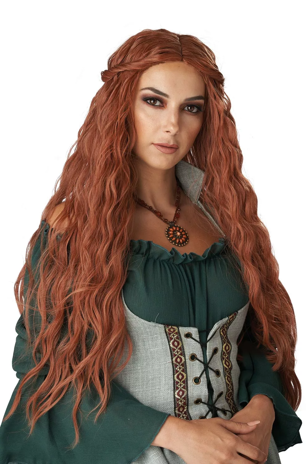Travel back in time to the Renaissance and fit in with the locals. This beautiful wig will give you the long, flowing locks of a royal medieval woman. With a beautiful auburn color, this wig can turn you into a character from your favorite TV series.