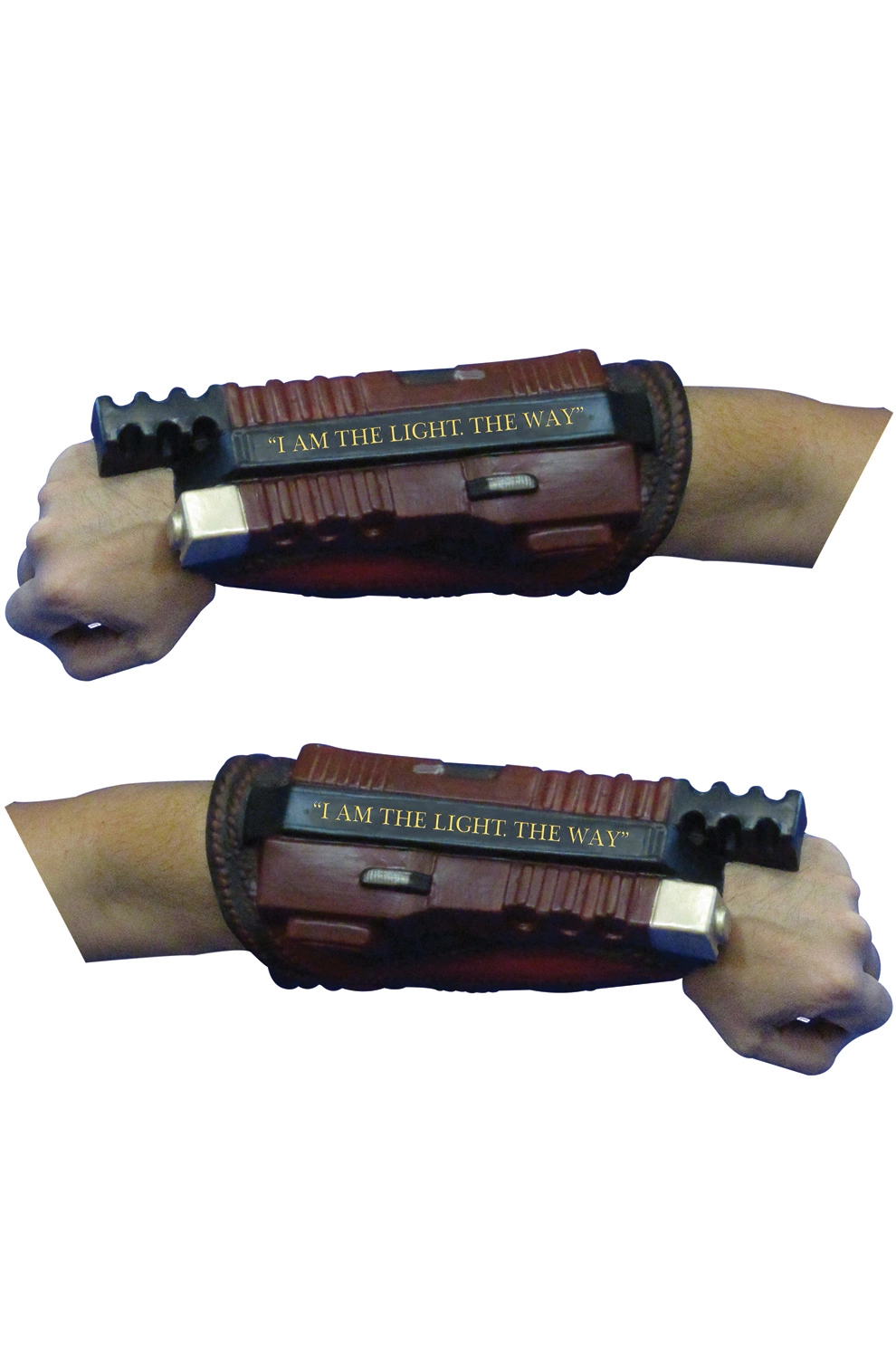 Stay razor sharp in your Deadshot costume and accessorize your outfit with his signature gun-toting gauntlets. This Deadshot costume accessory will take your outfit to the next level. Designed after the trusty weapons your favorite Suicide Squad member wears in the 2016 summer film, this accessory has the famous quote, I am the light the way, written across them for accuracy. And you know how important accuracy is for Deadshot.